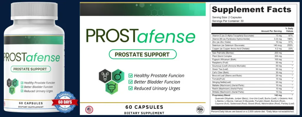 If you’re looking for a safe, natural way to support your prostate health, maintain strong urinary flow, and feel more comfortable and confident every day, ProstAfense is a dependable choice. Backed by positive user feedback and a money-back guarantee, it offers peace of mind and a chance to support your prostate naturally.